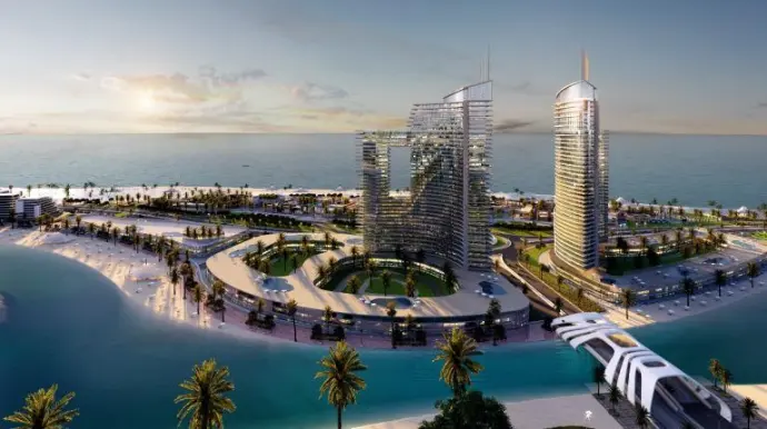 The $1.74 billion project features seven hotels, a beach clubhouse, villas, chalets, townhouses, and serviced apartments, along with a golf course, water canals, shopping and bazaar venues, restaurants, healthcare facilities, and a yachting marina.