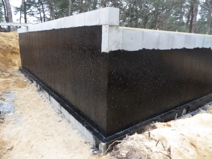 Used as a protective coating for concrete foundations and retaining walls to prevent moisture penetration.